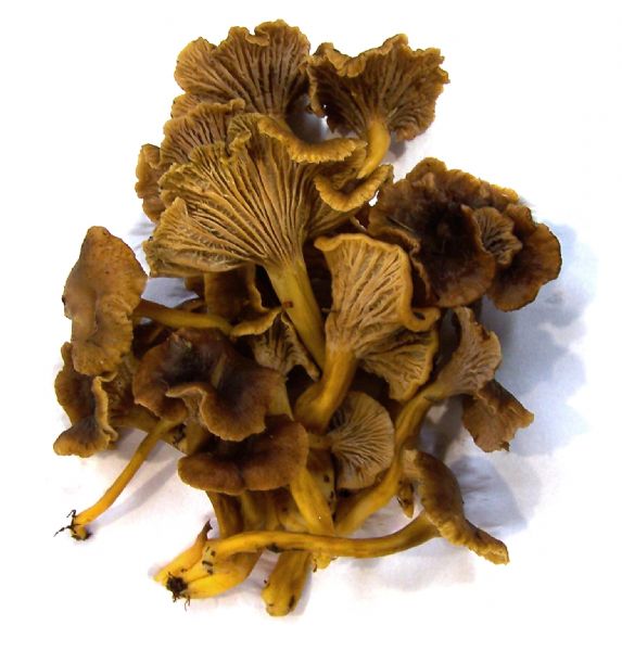 Descripción: De 2 a 5 cm de sombrero, plano o con forma de embudo, margen incurvado o lobulado. Pliegues bajo el sombrero en lugar de láminas, como todos los Cantharellus, de color grisáceo amarillento. Pie de color amarillo mate. Carne delgada, flexible y blanco-amarillenta, de olor y sabor agradables. Nota: Se diferencia de Cantharellus Lutescens por el margen incurvado y sobre todo por el color grisáceo del himenóforo, en contraste con el amarillo pálido de esta última.