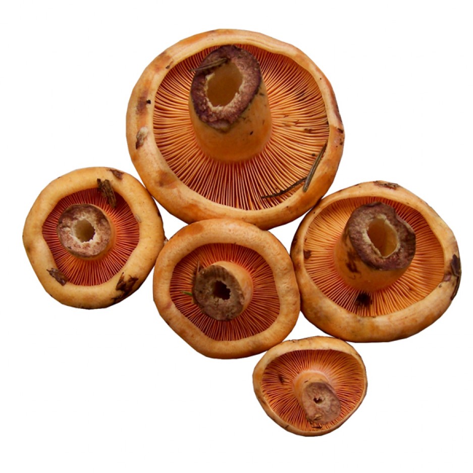 Nombre en Latín: Lactarius Deliciosus Hábitat: Fructifica bajo pinos en otoño tardío Sombrero: De 6-12 cm., de convexo a deprimido. Cutícula anaranjado-rojiza, con bandas concéntricas oscuras, verdes al tacto, pegajosa en tiempo húmedo. Margen fino, enrollado. Láminas: Brevemente decurrentes, estrechas, apretadas, anaranjado-rojizas, tiñen de verde al tacto. Pie: Corto, grueso. Carne: Blanquecina, que se colorea lentamente de naranja o de color zanahoria debido al látex de ese color que desprende al corte. Olor agradable y sabor un poco acre. Es una seta muy típica de los bosques de pinares españoles. Es muy apreciada por los aficionados seteros. A la parrilla es como más se potencia su sabor. También puede prepararse al horno, en guisos o salteados.